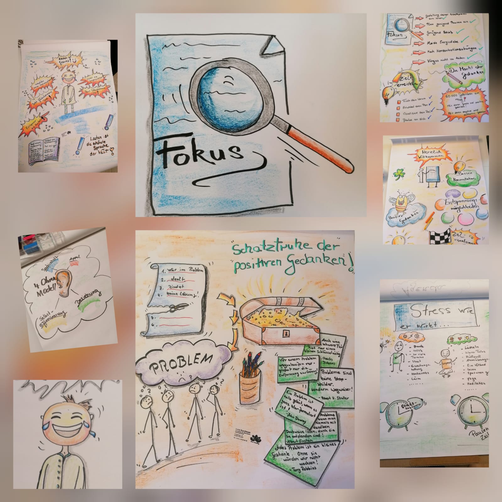 Für meine Workshops male und gestalte ich meine Flipchart zu Hause. Es kostet mich zwar mehr Zeit in der Vorbereitung, doch es macht mir einen riesen Spaß und ich nutze es einfach, als Entspannung.